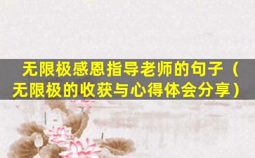 无限极是一家专注于健康产品研发和销售的公司,其文化中强调感恩和尊重。如果您想要表达对指导老师的感激之情,以下是一些可以参考的句子: