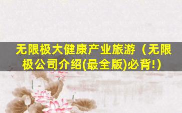 无限极(Infinitus)是一家总部位于中国广州的直销公司,隶属于香港李锦记集团。无限极主要从事健康产品的研发、生产和销售,包括保健食品、个人护理品、家居护理品等。随着健康产业的发展,无限极也开始探索将健康产业与旅游相结合的模式,即所谓的“大健康产业旅游”。