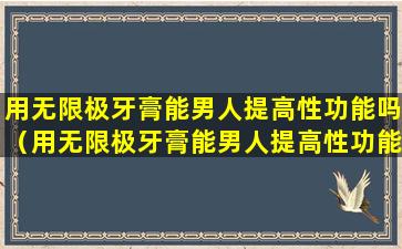 关于您提到的“无限极牙膏能提高男性性功能”的说法,目前没有科学证据支持这一观点。牙膏主要用于口腔卫生,其成分和设计目的是清洁牙齿、预防蛀牙和口臭等口腔问题。