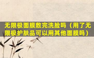 对于无限极的面膜,你应该遵循产品包装上的使用说明。如果说明中建议使用后清洗,那么你应该按照指示进行。如果没有明确说明,通常贴片型面膜使用后可以轻轻按摩脸部,帮助剩余的精华液吸收,不需要特别清洗。但如果感觉脸部有粘腻感,或者担心精华液堵塞毛孔,可以用清水轻拍脸部,去除多余的精华液。