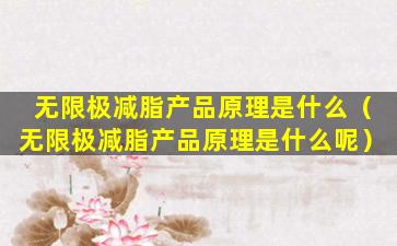 无限极是中国的一家直销公司,其产品线包括健康食品、个人护理品和家居用品等。关于无限极的减脂产品,其原理通常基于以下几个方面: