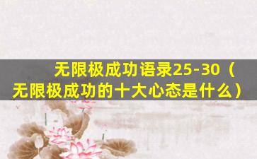无限极是一家中国的直销公司,主要销售健康产品。关于“无限极成功语录25-30”,这可能是指该公司内部或其销售人员之间流传的一些励志或指导性的语录。由于这些语录可能不是公开的或标准化的内容,我无法提供确切的语录。