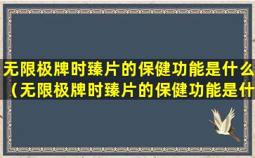 无限极牌时臻片是一种保健食品,其保健功能通常会在产品包装或说明书上明确标注。根据中国的相关法规,保健食品的保健功能必须经过国家食品药品监督管理局的审批,并且只能在批准的功能范围内进行宣传。