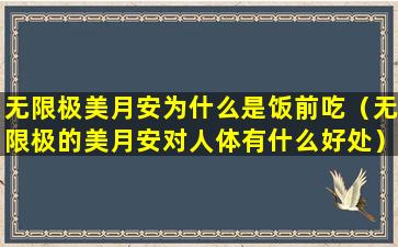 无限极美月安是一种保健品,其服用时间通常建议在饭前,这主要是基于以下几个考虑: