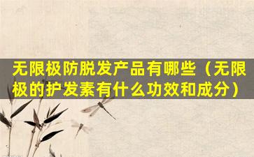无限极(Infinitus)是一家中国的健康产品公司,它提供多种健康和美容产品,包括一些声称有助于防止脱发的洗发水和护发素。以下是一些无限极可能提供的防脱发产品:
