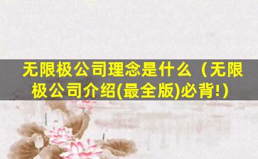 无限极(Infinitus)是一家中国的健康产品公司,隶属于香港李锦记集团。无限极公司的理念主要围绕以下几个方面: