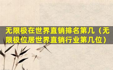 无限极(Infinitus)是一家总部位于中国的直销公司,隶属于香港李锦记集团。关于无限极在世界直销行业的排名,这个信息可能会随时间而变化,并且不同的排名机构或来源可能会有不同的评估标准和结果。