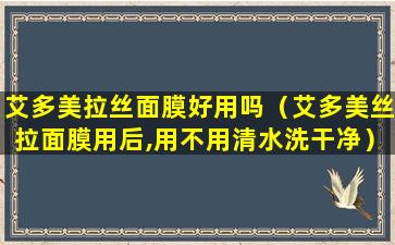艾多美丝拉面膜(假设这是一种面膜产品)使用后是否需要用清水洗净,通常取决于产品说明。不同的面膜产品有不同的使用方法,有些面膜是免洗的,使用后可以留在皮肤上,让其自然吸收;而有些面膜则需要在一定时间后用清水洗净。