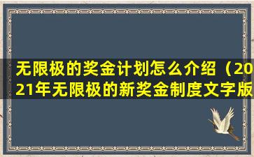 关于“2021年无限极的新奖金制度文字版”,我无法提供具体的信息,因为这涉及到公司的内部政策,而且这些信息通常不会公开发布。无限极是一家中国的直销公司,其奖金制度可能会根据公司的经营策略和市场情况进行调整。