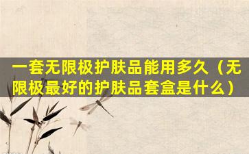 无限极(Infinitus)是一家中国的保健品和护肤品公司,其产品线包括多种护肤品。关于一套无限极护肤品能用多久,这个问题的答案取决于几个因素: