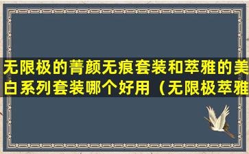 无限极(Infinitus)和萃雅(C-Viche)都是中国的化妆品品牌,它们各自拥有一系列的护肤产品。关于“菁颜无痕套装”和“美白系列套装”哪个更好用,这主要取决于个人的肤质、护肤需求以及对产品的个人体验。