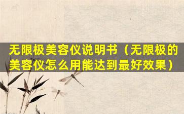 无限极(Infinitus)是一家中国的健康产品公司,提供多种健康和美容产品。如果您提到的“无限极美容仪”是指该公司的某种美容设备,那么使用方法和效果最大化通常需要遵循以下步骤: