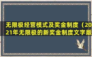 截至我的知识更新日期(2023年),我无法提供2021年无限极(Infinitus)的具体奖金制度文字版,因为这通常是公司的内部信息,且可能会根据地区和时间有所不同。无限极是一家中国的直销公司,主要销售健康产品,其奖金制度通常包括销售提成、团队业绩奖励、领导奖金等多种形式。