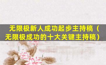 如果您需要准备一个关于无限极成功因素的主持稿,您可以考虑以下几个通用点来构建您的内容: