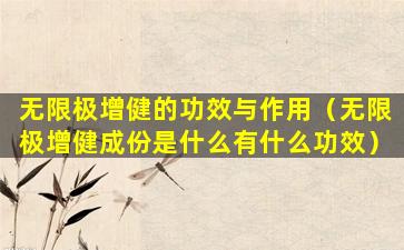 无限极增健是一种保健品,它含有多种植物提取物,据称可以帮助增强免疫力、改善身体健康。关于无限极增健的具体功效和作用,需要根据产品说明书或官方资料来确定,因为不同的产品成分和配方可能会有所不同。
