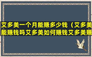 关于“艾多美”一个月能赚多少钱的问题,首先需要明确“艾多美”是指什么。如果“艾多美”是指某个具体的工作岗位、公司或者是一种商业模式,那么收入情况会根据多种因素有所不同,包括但不限于个人的工作能力、工作时间、所在地区的经济状况、公司的盈利情况等。