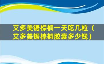 请注意,以上信息仅供参考,具体的服用剂量应遵循产品说明书或医生的指导。如果您手头有艾多美锯棕榈的产品,建议您仔细阅读包装上的说明,并按照推荐剂量服用。如果有任何疑问或不适,请及时咨询医生。