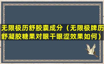 关于“无限极牌历舒凝胶糖果”对眼干眼涩的效果,我无法提供具体的评价或推荐,因为这需要基于科学研究和临床试验的数据。无限极是一家中国的健康产品公司,其产品可能包含多种成分,旨在支持健康和福祉。
