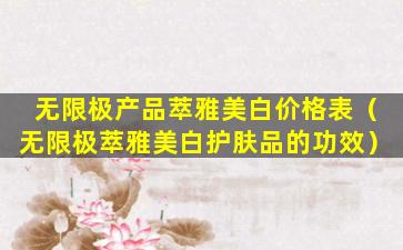无限极(Infinitus)是一家中国的健康产品公司,其产品线包括了多种健康食品、个人护理品和美容产品。萃雅美白系列是无限极推出的美容护肤产品之一,旨在帮助消费者改善肤色,达到美白效果。