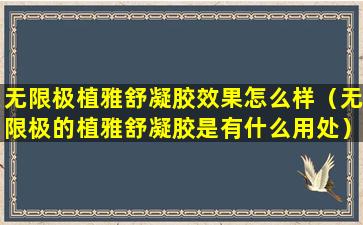 无限极(Infinitus)是一家中国的健康产品公司,其产品线涵盖了个人护理、健康食品等多个领域。植雅舒凝胶是无限极的一款个人护理产品,通常被宣传为具有舒缓、保湿和修复肌肤的功效。
