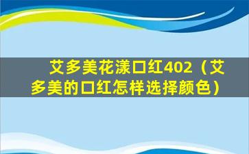 艾多美(Etude House)是韩国的一个化妆品品牌,以其可爱的包装和多样化的产品线而受到年轻消费者的喜爱。关于您提到的“艾多美花漾口红402色”,这可能是指Etude House的一款口红产品,其中的色号为402。