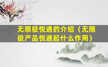 无限极(Infinitus)是一家中国的健康产品公司,隶属于香港李锦记集团。无限极的产品线涵盖了保健食品、个人护理品、家居用品等多个领域。其中,“悦通”可能是指无限极的一款产品,但具体的产品信息需要根据最新的市场资料来确定。