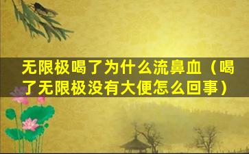 无限极是一家中国的保健品公司,其产品包括各种营养补充品、健康食品等。如果您在服用无限极产品后出现流鼻血的情况,这可能是由多种原因引起的,包括但不限于:
