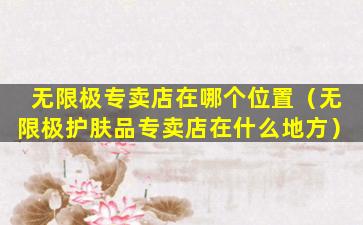 无限极(Infinitus)是一家中国的保健品公司,隶属于李锦记健康产品集团。无限极的产品线包括保健品、个人护理品和护肤品等。无限极的护肤品专卖店通常位于中国的各大城市,包括但不限于北京、上海、广州、深圳等。