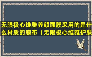 无限极心维雅养颜面膜采用的是生物纤维材质的膜布。生物纤维膜布是一种高科技生物工程产品,它由微生物发酵产生的天然纤维制成,具有良好的贴合性、透气性和保湿性。这种材质的膜布能够更好地贴合肌肤,帮助肌肤吸收面膜中的营养成分,从而达到更好的护肤效果。