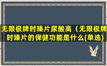 关于“无限极牌时臻片”与尿酸高的关系,首先需要明确的是,无限极是一家中国的保健品公司,其产品主要涉及健康食品、个人护理品等。而“时臻片”可能是该公司的一款产品,但没有具体的详细信息,无法提供准确的评价。