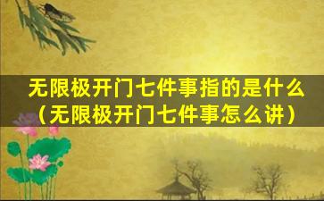 “无限极开门七件事”可能是指无限极公司的一种营销策略或者日常工作流程。无限极是一家中国的直销公司,主要销售健康产品。由于信息不明确,我无法提供具体的“开门七件事”内容。如果您能提供更多的上下文或者详细信息,我会尽力帮助您解答。