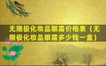 如果您想了解无限极眼霜的最新价格,建议您直接访问无限极的官方网站、授权的零售商或通过官方客服渠道获取信息。您也可以在电商平台如天猫、京东等查看是否有官方旗舰店,并查看产品的实时价格和用户评价。