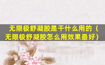 请注意,以上信息是基于一般的外用凝胶使用方法,具体到无限极舒凝胶的使用方法和效果,建议参考产品说明书或咨询专业人士。如果您有特殊的健康状况或正在使用其他药物,请在使用前咨询医生或药师。
