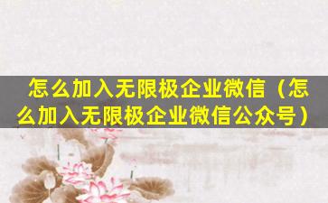 无限极(Infinitus)是一家中国的健康产品公司,如果你想加入无限极的企业微信公众号,可以按照以下步骤操作: