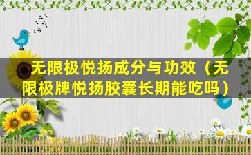 如果您对“无限极悦扬”或其他无限极产品的成分和功效有具体的疑问,建议直接咨询无限极的官方渠道或查看产品包装上的详细说明。同时,购买和使用任何保健产品前,最好咨询专业医疗人员的意见,确保产品适合您的健康状况。
