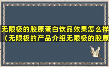 无限极(Infinitus)是一家中国的保健品公司,其产品线包括多种健康食品和营养补充品。胶原蛋白饮品是其中的一种产品,主要宣传的功效是帮助改善皮肤弹性、减少皱纹、促进关节健康等。