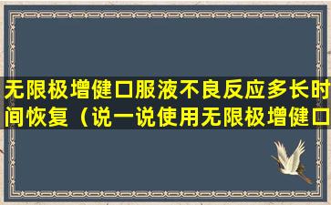 如果您在使用无限极增健口服液后出现了不良反应,首先应该停止使用该产品,并咨询医生或专业人士的意见。不良反应的恢复时间因人而异,取决于反应的严重程度、个人的健康状况以及是否采取了适当的治疗措施。