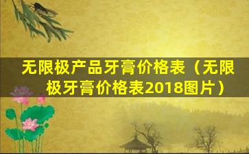 很抱歉,我无法提供实时的商品价格信息,包括无限极牙膏的价格表或图片。无限极是一家知名的健康产品公司,其产品包括牙膏、保健品等。如果您想了解无限极牙膏的价格,建议您直接访问无限极的官方网站或授权的零售商网站,或者前往实体店铺查询最新的价格信息。