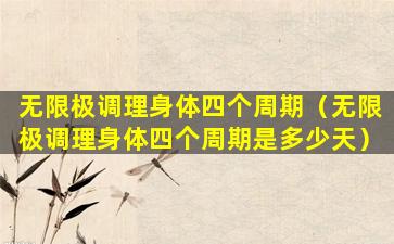 无限极是一家以中草药健康产品为主的公司,其产品和服务通常会根据个人的健康状况和需求来定制。关于“调理身体四个周期”的具体天数,这通常取决于所使用的产品或服务的具体说明。