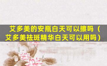 艾多美的安瓶产品通常是高浓度的精华液,用于提供肌肤所需的营养和修复。一般来说,安瓶产品是可以早晚使用的,但是否适合白天使用取决于产品的具体成分和说明。