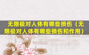 无限极是一家中国的直销公司,主要销售健康食品、个人护理品和家居用品等。关于“无限极对人体有哪些损伤和作用”,需要明确的是,任何产品或服务对人体的影响都应该是基于科学研究和临床试验的结果。