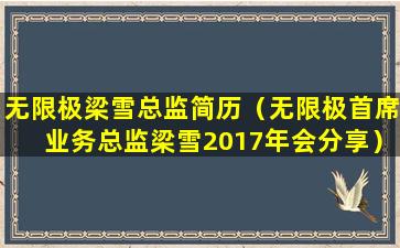 无限极是一家专注于健康产品和个人护理产品的公司,其业务模式包括直销。首席业务总监梁雪在2017年会上的分享可能涉及公司的业绩、市场策略、产品创新、团队建设以及未来的发展规划等方面。