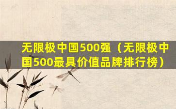 如果您提到的“无限极”是指一家公司或品牌,那么它可能是在某个特定的行业或领域内有一定的知名度和影响力。但是,要确认“无限极中国500最具价值品牌排行榜”的真实性和权威性,需要查看发布该排行榜的机构、评估标准和方法论等信息。
