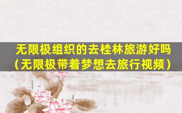 无限极是一家中国的直销公司,主要从事健康产品、个人护理产品等的销售。公司有时会组织旅游活动作为对销售人员的奖励或者团队建设活动。关于无限极组织的去桂林旅游是否好,这取决于几个因素: