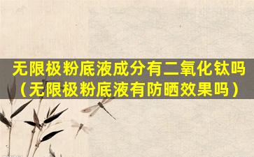 二氧化钛(Titanium Dioxide)是一种常见的化妆品成分,它通常用作物理防晒剂和着色剂。在粉底液中,二氧化钛可以提供遮瑕效果,并且具有一定的防晒功能。由于化妆品成分可能会随着产品配方更新而变化,因此最准确的做法是查看您所拥有的无限极粉底液包装上的成分列表,或者直接咨询无限极公司以获取最新的产品信息。