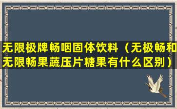 “无极畅”和“无限畅果蔬压片糖果”可能是两种不同的产品,它们之间的区别可能在于成分、功效、品牌、生产商等方面。由于这些信息没有在问题中提供,我无法给出具体的区别。如果您需要了解这两种产品的具体差异,建议查看它们的官方说明书或联系生产商获取详细信息。同时,购买此类产品时,请确保它们来自可靠的来源,并且符合您的健康需求。