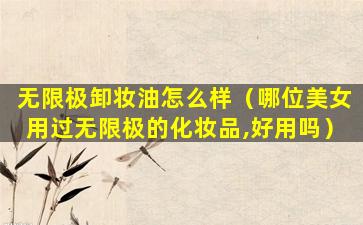 无限极(Infinitus)是中国的一个健康产品品牌,隶属于李锦记健康产品集团。无限极的产品线涵盖了保健品、个人护理品等多个领域。在化妆品方面,无限极也推出了卸妆油等产品。