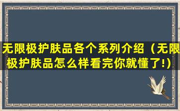 无限极(Infinitus)是中国著名的健康产品品牌,隶属于李锦记健康产品集团。无限极不仅提供健康食品,还推出了护肤品系列,旨在通过天然成分和现代科技结合,为消费者提供全面的护肤解决方案。以下是无限极护肤品的一些主要系列介绍: