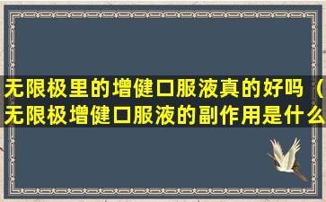 如果您对无限极增健口服液的副作用有疑问,建议您查看产品包装上的说明书,或者直接联系生产厂家获取更详细的信息。同时,如果您在使用过程中出现任何不适,应立即停止使用并咨询医生。