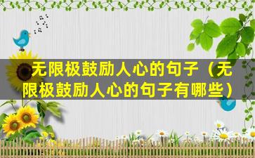 无限极是一家中国的直销公司,主要销售健康产品。在公司的宣传和培训中,常常会使用一些鼓励人心的句子来激励员工和销售代表。以下是一些可能出现在无限极培训或宣传材料中的鼓励性句子: